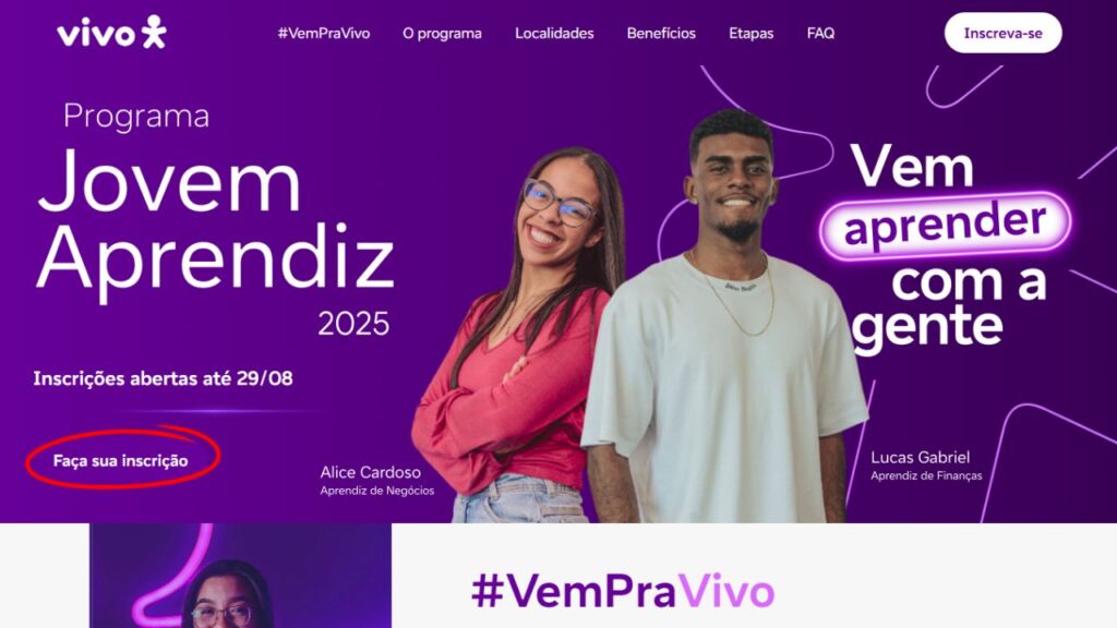Aqui você vai entender como se inscrever no Jovem Aprendiz Vivo 2025, de forma prática, passo a passo e sem erros. Se você chegou até aqui, é sinal de que está realmente interessado em conquistar sua vaga — e saber exatamente o que fazer é essencial para não perder essa oportunidade.