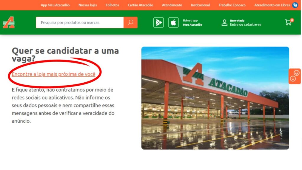 1️⃣ Acesse a página “Trabalhe Conosco” no site do Atacadão (🔗 atacadao.com.br/institucional/trabalhe-conosco).