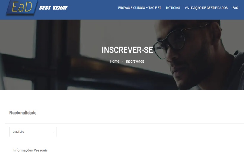 - Entre no site do Sest Senat, clique no links “INSCREVER-SE” que fica na parte SUPERIOR da tela e informe seus dados pessoais.